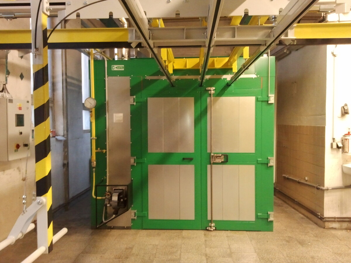 01. Součástí procesu je i úprava materiálu před lakováním, která je prováděna ve vysokotlakém mycím stroji při teplotě 65 °C. Zde se výrobek odmastí a opláchne s vytvořením antikorozního filmu.